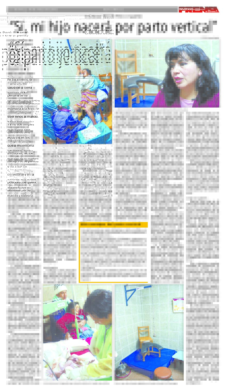 Mientras que la segunda entrega periodística títulada: ¨Sí, mi hijo nacerá por parto vertical¨ refleja el gran trabajo que se lleva a cabo en Churcampa, una provincia de la sierra peruana, donde personal médico, promotoras de salud y la Asociación de Comunicadores Sociales Calandria junto a FIDE han recuperado el parto vertical, una práctica milenaria de traer niños al mundo de forma natural, con costumbres antiguas, parteras tradicionales y así frenar el alto índice de muertes maternas.