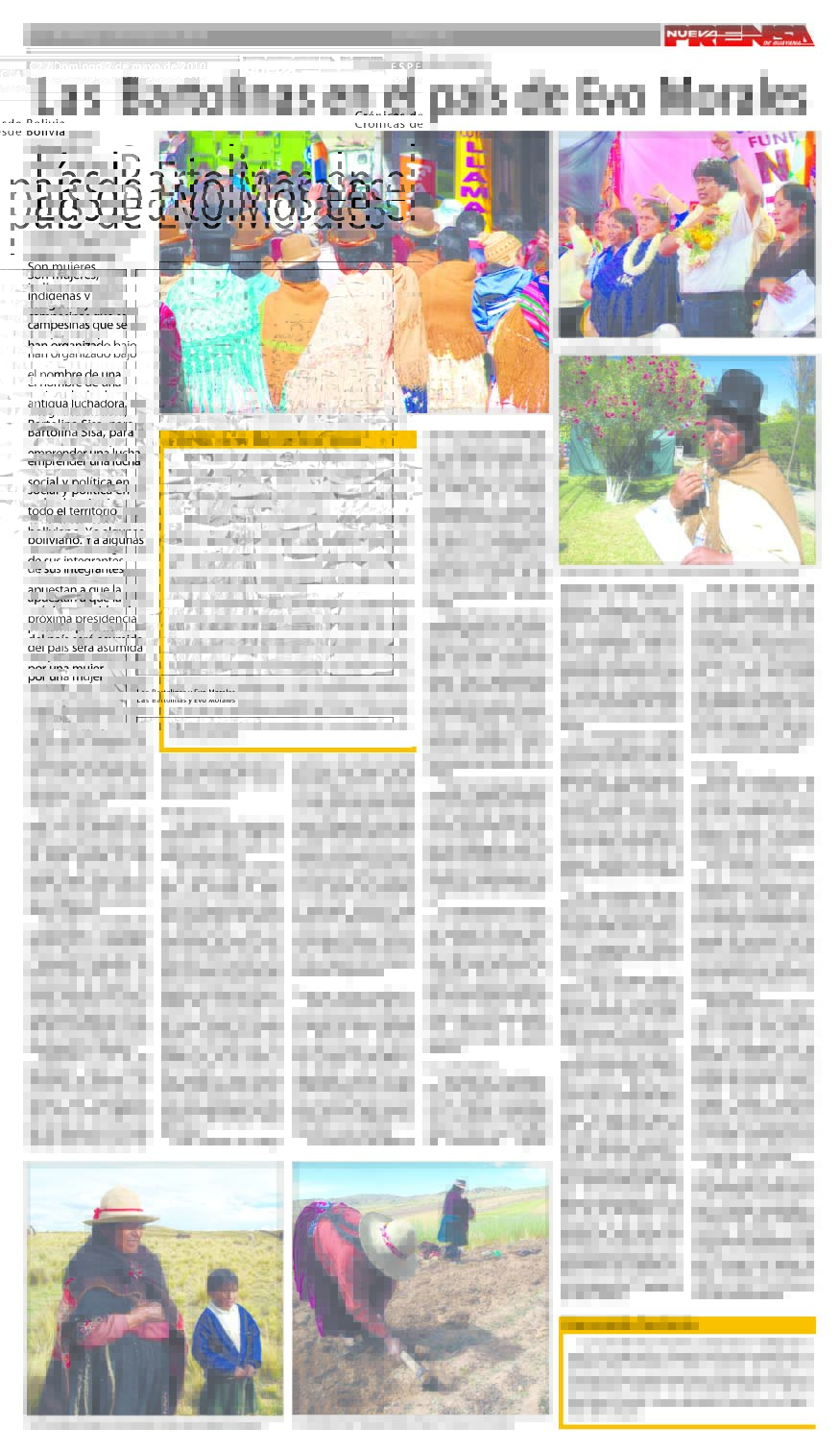En el caso de Bolivia, el reportaje ¨Las Bartolinas en el país de Evo Morales¨ centró la historia en Natividad Guzmán, una mujer líder que ha logrado formarse para representar a su comunidad, a la mujeres campesinas e indígenas organizadas en la asociación Bartolina Sisa, en honor a una heroína indígena que fue asesinada en medio de una clara lucha por los derechos fundamentales en este país de Latinoamerica.