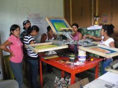 Por otro lado, las mujeres jóvenes lencas tuvieron acceso varios talleres de serigrafía, no sólo como una forma de comunicación impresa y de difusión alternativa de sus derechos, sino también un medio de autogestión para el propio COPINH. En la actualidad, las participantes se han autodenominado “Red araña”, a fin de gestionar los beneficios adquiridos en los talleres y así financiar parte de sus campañas y acciones de difusión.