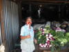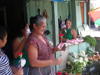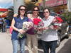 Momento en que se reparten flores en la plaza de Santa Rosa
