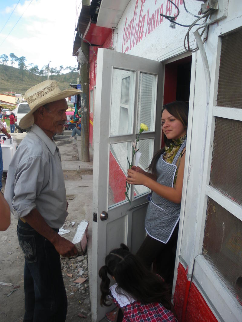 Se comenzó por las palabras del Alcalde de Santa Rosa, en honor a un día especial para las mujeres hondureñas y su aliento a intentar avanzar en la participación de espacios públicos y políticos. La mañana continuó con la distribución de claveles de diferentes colores, a mujeres que trabajan en mercados, mujeres en la cárcel, barrios más aislados de la zona céntrica de la ciudad. El homenaje a esas mujeres se convirtieron en sonrisas, lágrimas de emoción al recibir una flor por primera vez o desde hacía mucho tiempo, en expresiones de sorpresa por sentir que alguien se acordó de ellas en un día como ese.
